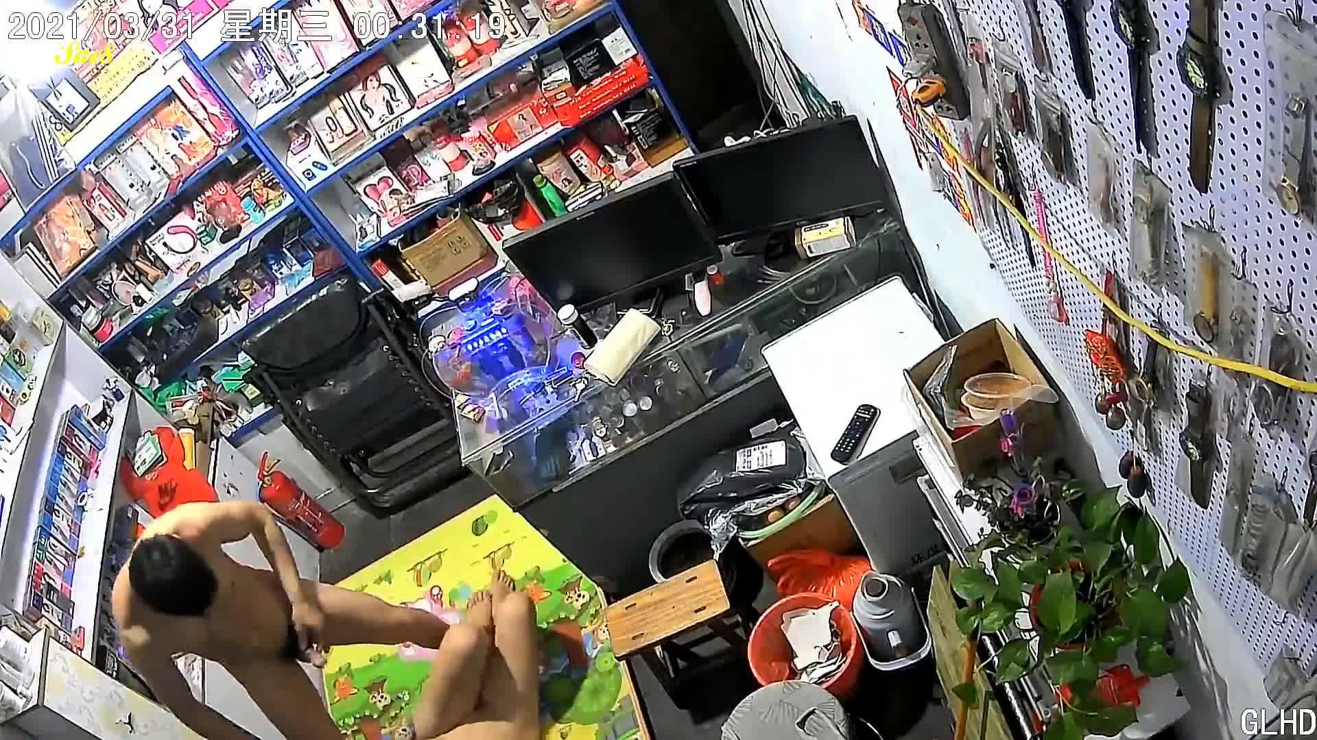 摄像头偷拍成人性用品商店老板娘打地铺会情人。