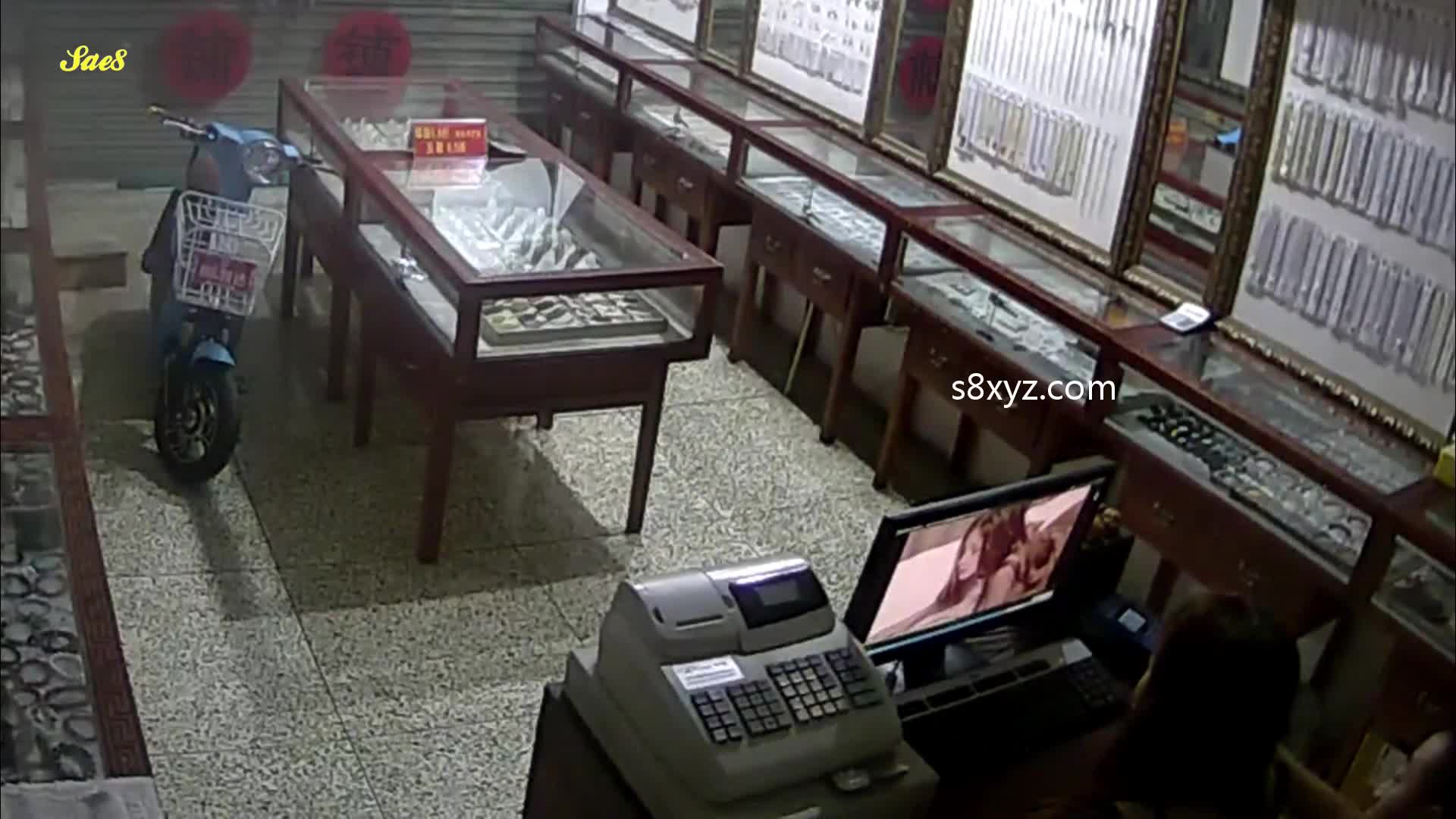 珠宝店女职员关店后看小电影饥渴难耐老板趁机拿下